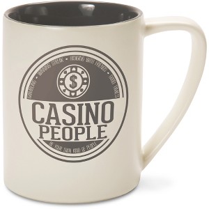 18oz mug, packaged in a plain box, is made from stoneware and features a large handle for ease of use. The interior and the decal is glossy, whereas the exterior is matte. "Casino People" decal, including "Gambling; Winning Streak; Hanging With Friends; Good Times" text is printed on both sides of the mug, as are the accompanying blank logo and "Be Your Own Kind Of People" text. Wash by hand only to best preserve decals. Microwave safe. Great for those who wish to show their love of casinos.