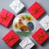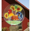 14" round plate, packaged securely in a printed box, is made from glass. . Features a printed rooster design. . Dishwasher safe, although washing by hand is recommended to best preserve decals. Microwave safe. . Great for gifting to a friend. .