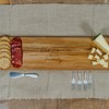 - PREMIUM QUALITY: 21" serving board, packaged in a printed acetate box, is made from Prop 65-approved acacia wood and includes one spreader and four forks, made from metal alloy.