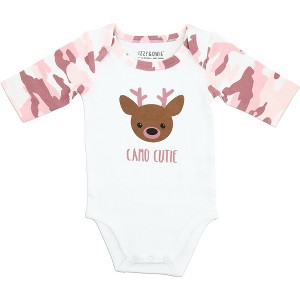 Pavilion Gift Company - Jewel Pink Camo Deer - 6-12 Months 3/4 Sleeve Bodysuit - Leotards and Bodysuits