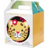 IN-HOUSE DESIGN: Dish, cup, and bowl all feature different parts of the printed jungle cat design. Plate features the same printed jungle cat design.