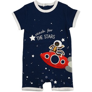 - IN-HOUSE DESIGN: Short sleeve 100% cotton romper is the perfect addition to your little ones' wardrobe. Two snaps at the back of the neck ensure a comfortable and secure fit. The bottom crotch area has five snaps, making it on and off easy and quick. Sleeves, neckline, and bottom-of-leg openings are trimmed with a soft coordinating trim for style and durability.