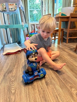 [This review was collected as part of a promotion.] This paw patrol chase is pretty cool. It moves around in its Hoover board and my kids interact with it pretty good. It says a lot of words and lights up as well. It is an overall very good toy.