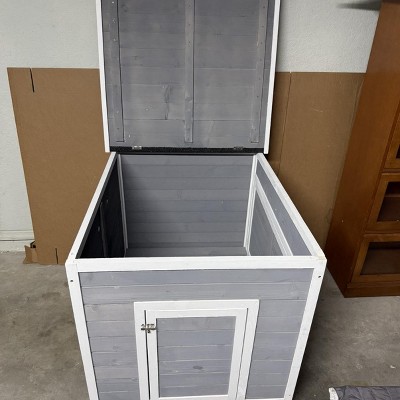 PawHut Duck Coop, Wooden Duck House with Openable Roof, Removable Floor, Double Doors, Ramp, for 2-4 Ducks, Geese, Rabbits, Chickens, 25" x 32" x 30"