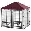 PawHut Outdoor Dog Kennel with Rotating Bowl Holders, Dog Playpen Fence with Waterproof Cover, 4.6' x 4.6' x 5', Red