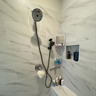 The tool I didn’t know I needed! We have a large shower and shower heads do not rotate so it’s nice to have this handheld not only for bathing our 2 dogs but also for rinsing out the shower walls. The different modes are awesome and great water pressure (better than our shower heads). Installation wasn’t too bad. The soap dispenser works really well. Two cons: 1. It tends to leak and drip a little between the adapter and the shower head. Probably cuz it’s plastic and not the tightest grip with the shower head threads but for the price of this it’s not bad at all and worth it. 2. The wall mount it came with felt sturdy when I first applied it, but the shower head came crashing down.. multiple times. I tried my own 3M sticky on it and it still kept falling. I reached out to the company and they got some info from me then sent me a free replacement - it was a new bone shaped mount with 2 strips of a different kind of adhesive than what the item came with. I applied it and it has been holding up much better and hasn’t fallen down yet. One tip tho- I took off the soap dispenser from the back of it to make it a little lighter and also so it can dry out until it’s next use without growing mold in it. Overall GREAT value for the money and super useful. Love that it can stay up in the shower and not have to take it down and re-install every time you need it.