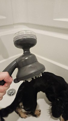 Oh my goodness I go to the self dog wash and spend $35 per dog. I spent $30 on this. I have a nice screened and patio that I'm able to attach this to the garden hose. I then have a plastic kiddir swimming pool they stand in while I gave them their bath with this. The settings on this are incredible. They absolutely loved it. And the little nuts when you put it against their skin like massages them and really cleans them deep. Very easy to use very high quality material. I guarantee you if this was in my shower I'd be using it myself. 😂 I mean you literally could put the body wash in the thing and this is the best massager it feels so good. However I don't think my neighbors would appreciate me taking a shower with my garden hose outside so I'll leave this pleasure to my dogs.