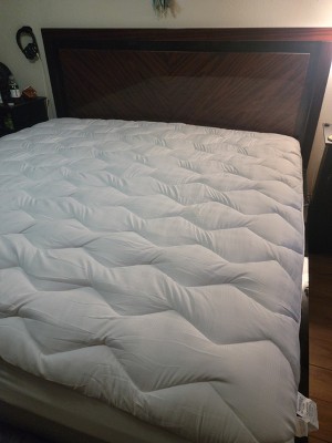 A: Dear customer, thanks for your interest! This mattress pad features 500-thread-count 100% polyester cover. I hope it was helpful. Thank you!
