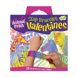 Peaceable Kingdom Valentines Cards for Kids Classroom - Set of 28 Valentines Day Gifts - Animal Print Slap Bracelets