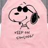 Peanuts - Cool Joe Keep On Smiling - Youth Girls Raglan Tee - From the best-loved comic strip in history comes officially licensed PEANUTS apparel for fans everywhere. Show your love for Charlie Brown, Snoopy, Woodstock, Lucy, Linus, Pigpen and the whole gang. Copyright Peanuts.