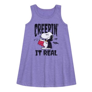Peanuts - Creepin It Real - Toddler & Youth Girls A-line Dress - From the best-loved comic strip in history comes officially licensed PEANUTS apparel for fans everywhere. Show your love for Charlie Brown, Snoopy, Woodstock, Lucy, Linus, Pigpen and the whole gang. Copyright Peanuts.