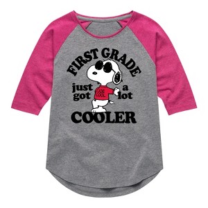 Peanuts - First Grade Just Cooler - Toddler And Youth Girls Raglan Graphic T-Shirt - From the best-loved comic strip in history comes officially licensed PEANUTS apparel for fans everywhere. Show your love for Charlie Brown, Snoopy, Woodstock, Lucy, Linus, Pigpen and the whole gang. Copyright Peanuts.