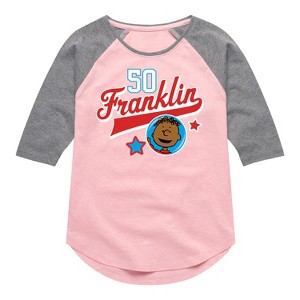 Peanuts - Franklin Athletic 50 - Youth Girls Raglan Tee - From the best-loved comic strip in history comes officially licensed PEANUTS apparel for fans everywhere. Show your love for Charlie Brown, Snoopy, Woodstock, Lucy, Linus, Pigpen and the whole gang. Copyright Peanuts.