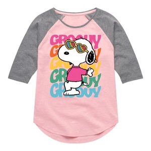 Peanuts - Groovy Stacked - Toddler And Youth Girls Raglan Graphic T-Shirt - From the best-loved comic strip in history comes officially licensed PEANUTS apparel for fans everywhere. Show your love for Charlie Brown, Snoopy, Woodstock, Lucy, Linus, Pigpen and the whole gang. Copyright Peanuts.