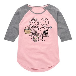 Girls' Peanuts Group Easter Shirt Tail Raglan Graphic T-shirt - Light Pink/Ath Hea - Large