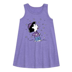 Girls' - Peanuts - Lucy Snow Graphic Sleeveless Aline Dress - 1 of 4