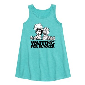 Girls' - Peanuts - Marcie & Peppermint Patty Waiting for Summer Dazed Graphic Sleeveless Aline Dress - 1 of 4