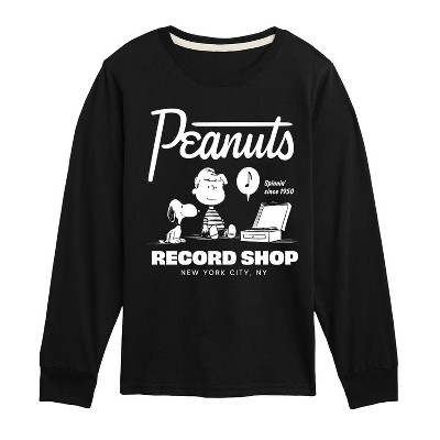 Peanuts - Record Shop - Toddler & Youth Raglan Graphic T-Shirt - From the best-loved comic strip in history comes officially licensed PEANUTS apparel for fans everywhere. Show your love for Charlie Brown, Snoopy, Woodstock, Lucy, Linus, Pigpen and the whole gang. Copyright Peanuts.