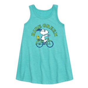 Peanuts - Ride Green - Toddler and Youth Girls A-line Dress - From the best-loved comic strip in history comes officially licensed PEANUTS apparel for fans everywhere. Show your love for Charlie Brown, Snoopy, Woodstock, Lucy, Linus, Pigpen and the whole gang. Copyright Peanuts.