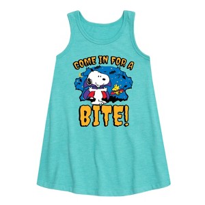 Girls' - Peanuts - Snoopy Come In For A Bite Graphic Sleeveless Aline Dress - 1 of 4