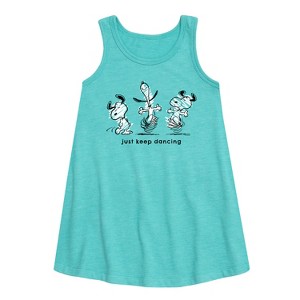 Girls' - Peanuts - Snoopy Just Keep Dancing Graphic Sleeveless Aline Dress - 1 of 4