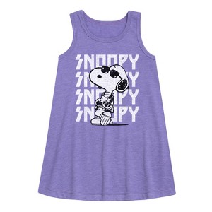 Girls' - Peanuts - Snoopy Rock Name Repeat Graphic Sleeveless Aline Dress - 1 of 4