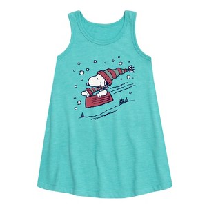 Girls' - Peanuts - Snoopy Sledding Graphic Sleeveless Aline Dress - 1 of 4