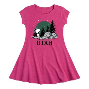 Peanuts - Snoopy Utah - Toddler And Youth Girls Fit And Flare Dress - From the best-loved comic strip in history comes officially licensed PEANUTS apparel for fans everywhere. Show your love for Charlie Brown, Snoopy, Woodstock, Lucy, Linus, Pigpen and the whole gang. Copyright Peanuts.