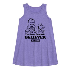 Peanuts - The Great Pumpkin Believer - Toddler and Youth Girls A-line Dress - From the best-loved comic strip in history comes officially licensed PEANUTS apparel for fans everywhere. Show your love for Charlie Brown, Snoopy, Woodstock, Lucy, Linus, Pigpen and the whole gang. Copyright Peanuts.
