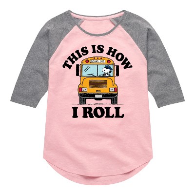 Peanuts - This How I Roll - Toddler And Youth Girls Raglan Graphic T-Shirt - From the best-loved comic strip in history comes officially licensed PEANUTS apparel for fans everywhere. Show your love for Charlie Brown, Snoopy, Woodstock, Lucy, Linus, Pigpen and the whole gang. Copyright Peanuts.