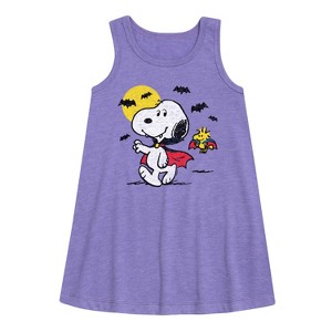 Girls' - Peanuts - Vampire Snoopy Graphic Sleeveless Aline Dress - 1 of 4