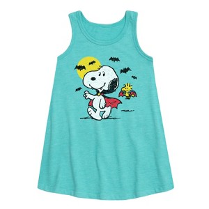 Girls' - Peanuts - Vampire Snoopy Graphic Sleeveless Aline Dress - 1 of 4
