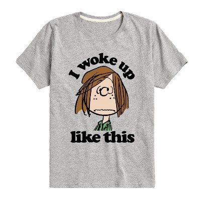 Girls' Peanuts Patty I Woke Up Like This Shirt Tail Raglan Graphic T-shirt - Athletic Heather/Fuchsia - 2T