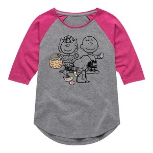 Girls' Peanuts Group Easter Shirt Tail Raglan Graphic T-shirt - Athletic Heather/Fuchsia - 2T