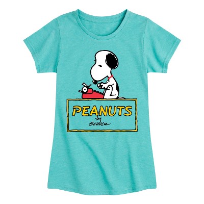 Peanuts - Snoopy Typing - Toddler & Youth Girls Raglan Graphic T-Shirt - From the best-loved comic strip in history comes officially licensed PEANUTS apparel for fans everywhere. Show your love for Charlie Brown, Snoopy, Woodstock, Lucy, Linus, Pigpen and the whole gang. Copyright Peanuts.
