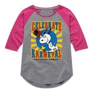 Peanuts - Snoopy Celebrate Karneval - Toddler & Youth Girls Raglan Graphic T-Shirt - From the best-loved comic strip in history comes officially licensed PEANUTS apparel for fans everywhere. Show your love for Charlie Brown, Snoopy, Woodstock, Lucy, Linus, Pigpen and the whole gang. Copyright Peanuts.