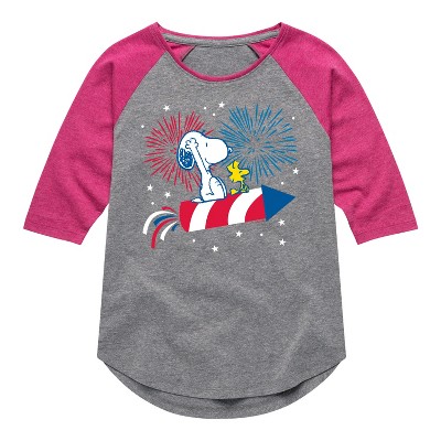 Girls' Peanuts Stay Cozy Shirt Tail Raglan Graphic T-shirt - Athletic Heather/Fuchsia - 2T