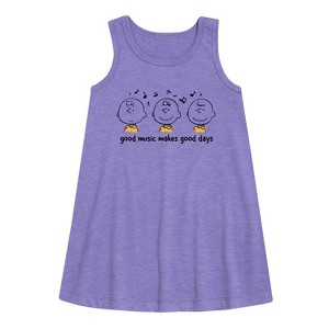 Peanuts - Good Music Good Days - Toddler & Youth Girls A-line Dress - From the best-loved comic strip in history comes officially licensed PEANUTS apparel for fans everywhere. Show your love for Charlie Brown, Snoopy, Woodstock, Lucy, Linus, Pigpen and the whole gang. Copyright Peanuts.