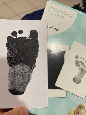 [This review was collected as part of a promotion.] This clean touch ink pad was so easy to use (even with a squirmy baby)! I love that I'll have the memories of his little footprint for ever in his baby book. The ink transferred easily and was also very easy to wipe off.