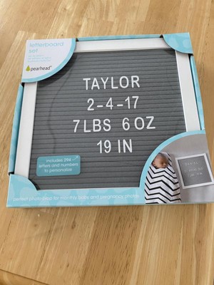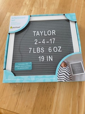Trendy and fun, Pearhead's letterboard set is the perfect addition to your Instagram pictures. This letterboard includes gray felt and a white, wooden frame, making it perfect for your little one's monthly pictures! The easel makes it easy to prop up next to baby for their pictures and display their message. With the 292 letters and numbers included you can have fun personalizing your pictures from month to month. You can include things like baby's favorite foods to her height and weight. Not using it as a monthly picture board? No problem! This letterboard can be used for any special picture, announcement, or moment. Announcing you're pregnant? Have fun filling in baby's due date and snapping a picture. Once you get the best picture share your announcement on Instagram with everyone you love to see. It also includes a sawtooth hanger to easily hang on your wall. Every day you can include a new message for the entire family to see! This letterboard makes the perfect gift for anyone expecting a baby or just because! Have fun wrapping it up and gifting for that special occasion. Use Pearhead's letterboard set for your fun monthly baby pictures or for any fun pictures! Snap, post, and love! Use the hashtag #mylittlepearhead for a chance to be featured on Pearhead's social pages. Product dimensions: 10" W x 10" H x .75" D
