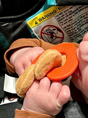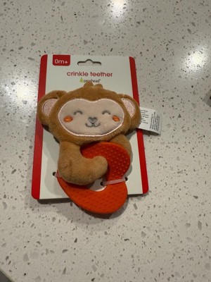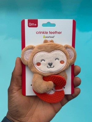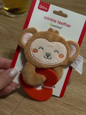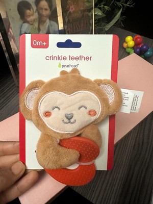 [This review was collected as part of a promotion.] This Pearhead crinkle teether is super cute and perfect for little hands. The soft monkey and gentle crinkle sound keep my baby interested, and the textured teether really helps during teething. Great quality and safe for newborns. Love it! 🧡