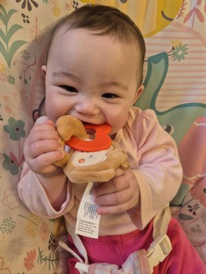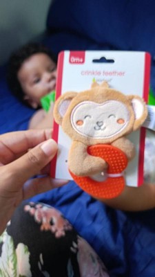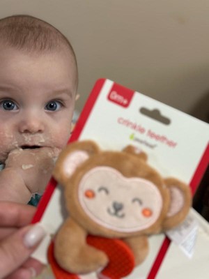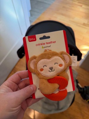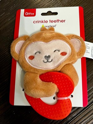 [This review was collected as part of a promotion.] The Pearhead Monkey Crinkle Teether is honestly such a little lifesaver. My seven month old love to chew this alot. The crinkle sound instantly grabs her attention, and the soft, plush monkey is super easy for tiny hands to hold. The teether part is firm enough to soothe sore gums but still gentle, and I love that the whole toy is lightweight — perfect for on-the-go. Its cute.