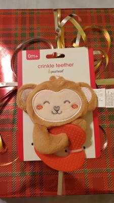 [This review was collected as part of a promotion.] The Pearhead Valentine's Day Baby Teether is cute. The monkey design is adorable, and the crinkle texture is so fun for babies. These adorable little teethers are just the right size for baby to hold. The quality is good, which is important for a baby item. And when it gets dirty I throw it in the wash and it's as good as new. My baby has always loved her Pearhead teether, so I knew it was the perfect gift for my family member who is about to have a baby. I'm giving it as a Christmas gift, and it's a nice gift for any occasion to show some love. I recommend it