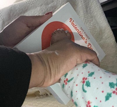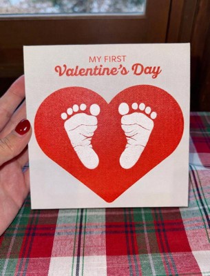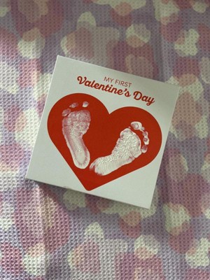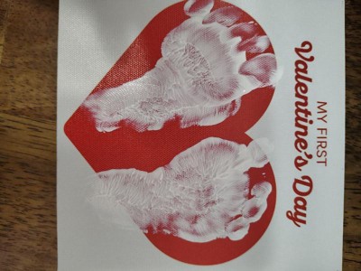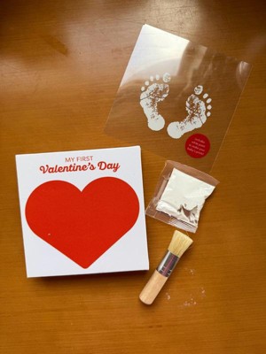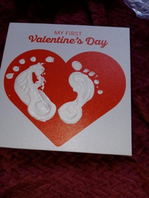 [This review was collected as part of a promotion.] This Pearhead My First Valentine’s Day canvas was a fun treat to use with my 7 week old! I liked that the paint could easily wipe off the canvas if we made a mistake (it took us 3 tries to get the right foot! My daughter was tired by the time we got to her left foot so it looks like she’s missing some toes 😅). I do with the set had come with a paint brush. We were lucky we had one in the house to use to paint her feet but otherwise wouldn’t have been able to do this. The set came with more than enough paint to try it multiple times to get a decent footprint. Overall it was a bit tricky to use (that’s probably user error) but will be a nice canvas to keep as a memory of her little feet!