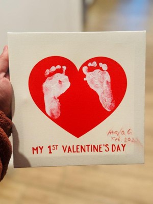 [This review was collected as part of a promotion.] Cute keepsake canvas for my baby’s first Valentine’s Day. Easy to use but can get a bit messy and may take a few tries to get a clean print. Good quality and great memory keep, just expect some paint cleanup. Overall fun and meaningful!!