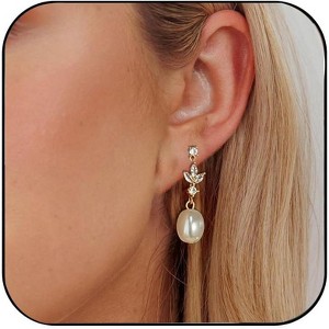 Pearl Earrings for Women Trendy, Dainty 14K Gold Plated CZ Pearl Drop Earrings Earring Wedding Prom
