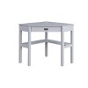 Maximize your workspace without compromising on style with the Peggy Corner Desk by Linon. Designed with modern living in mind, this chic campaign-style desk is finished in a smooth, versatile grey and accented with a polished silver drawer pull for a sleek, contemporary look. Its unique corner silhouette makes it the ultimate space-saver, perfect for tucking into tight spots in home offices, dorm rooms, or creative spaces. Clean lines and smart storage make it as functional as it is fashionable.