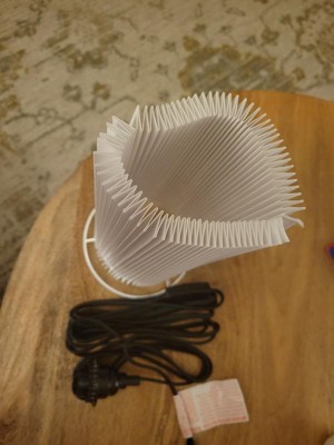 Maybe I would have liked this more if it arrived without being bent and warped, but I honestly just think it isn't my cup of tea. It is a simple design and may be a cool addition for some places, but it hasn't for me. It was simple to put together and has a good, solid cord. The lamp itself is just not well made for shipping. It should just be purchased in a store if you do want to give it a try and confirm no warping. :) It gives off a unique glow with the pleated paper, but otherwise not a ton of redeeming qualities.