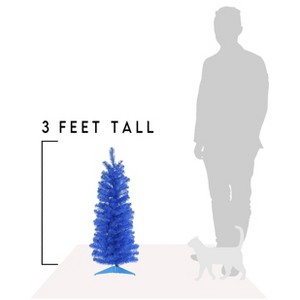 Be bold with your holiday style with a bold blue tree. Its compact size makes it perfect for a shelf, desktop or bedside table. The vibrant colors make a stunning backdrop for mini metallic ornaments or gold tinsel. Includes a sturdy plastic stand and disassembles for easy storage.