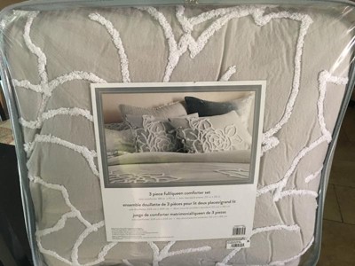 Peri Home 3pc Full/Queen Chenille Rose Comforter Set Gray: Bedding, Floral Design, Includes Shams
